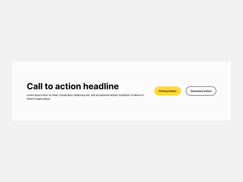 CB-CTA-001 is our Call to Action block, designed to guide users toward a clear next step. It highlights an important action within the flow of a page, helping users move from reading to doing without disrupting the overall experience.